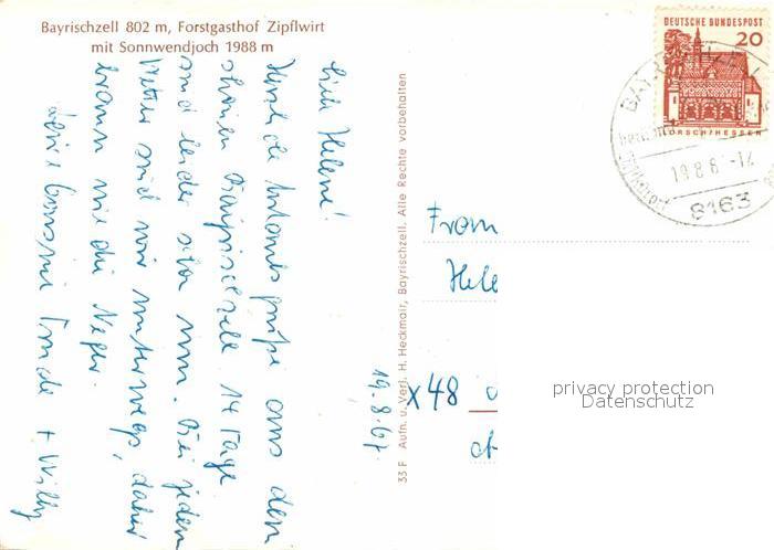 72865527 alte Postkarte Bayrischzell Forstgasthof Zipflwirt mit Sonnwendjoch postalisch gelaufen Erhaltung siehe scans [WerneD78] KatCode: 11110009182112