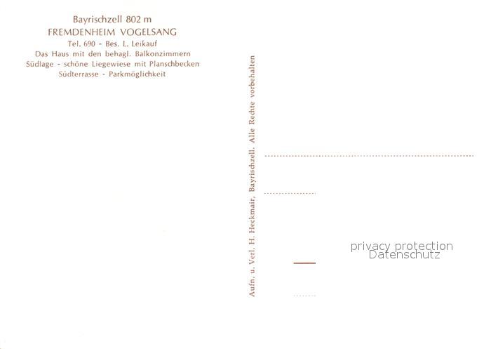 73076973 Bayrischzell Fremdenheim Vogelsang postalisch nicht gelaufen Erhaltung siehe scans [KathaD81] KatCode: 11110009182112