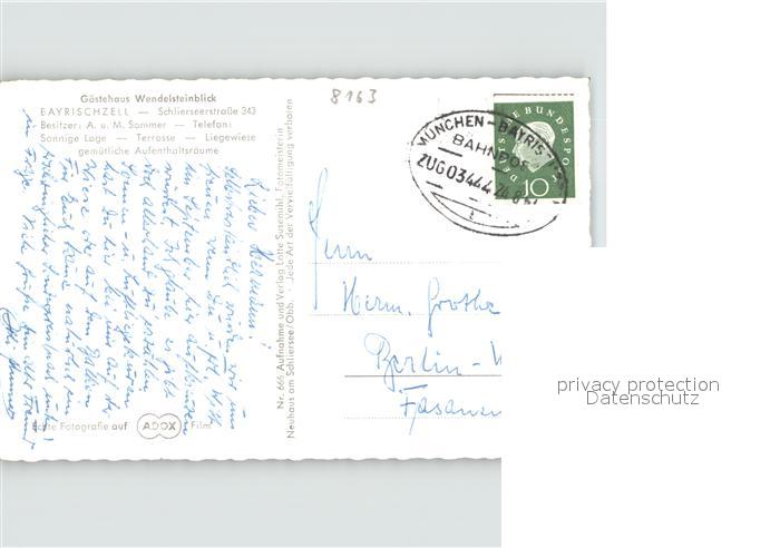 71850182 alte Postkarte Bayrischzell Gaestehaus Wendelsteinblick Bahnpost postalisch gelaufen Erhaltung siehe scans KatCode: 11110009182112