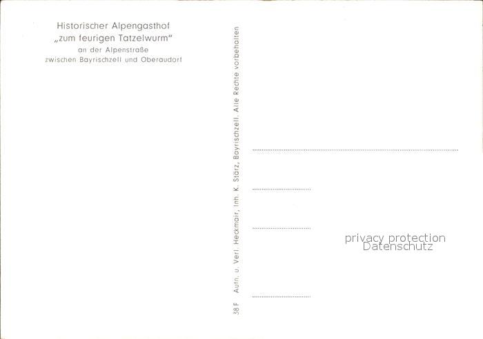 72376915 Bayrischzell Gasthaus zum feurigen Tatzelwurm postalisch nicht gelaufen Erhaltung siehe scans KatCode: 11110009182112