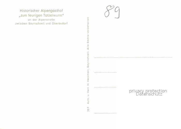72798016 Bayrischzell Gasthaus zum feurigen Tatzelwurm Enzian postalisch nicht gelaufen Erhaltung siehe scans [KathaD81] KatCode: 11110009182112