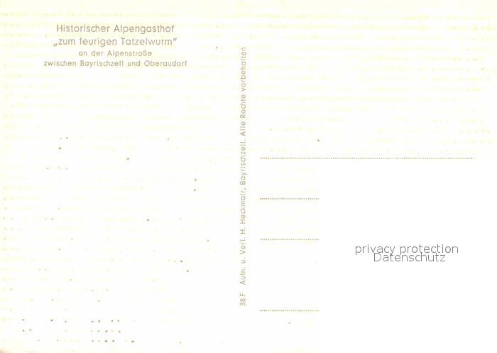 72715893 Bayrischzell Gasthaus zum feurigen Tatzelwurm Oberaudorf postalisch nicht gelaufen Erhaltung siehe scans [LiesaD40] KatCode: 11110009182112