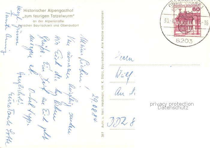 73054752 alte Postkarte Bayrischzell Gasthaus zum feurigen Tatzelwurm Panorama Wasserfall postalisch gelaufen Erhaltung siehe scans [WerneD78] KatCode: 11110009182112