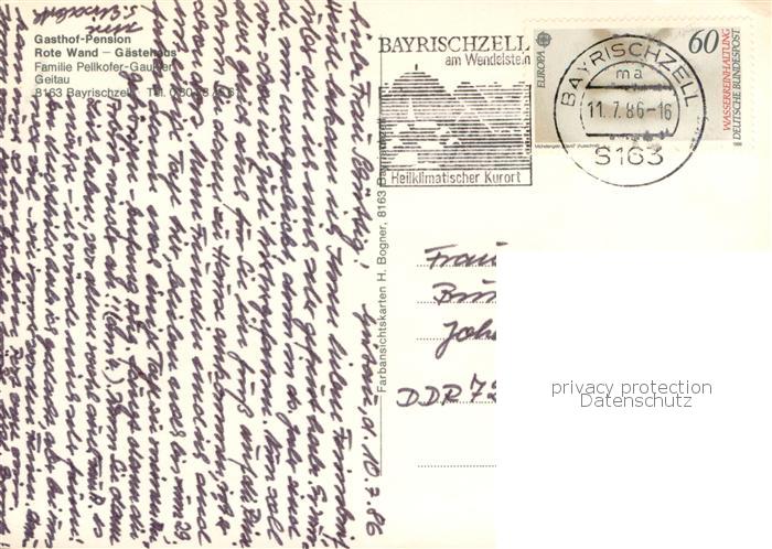 73784223 alte Postkarte Bayrischzell Gasthof Pension Rote Wand Gaestehaus postalisch gelaufen Erhaltung siehe scans [WerneD78] KatCode: 11110009182112