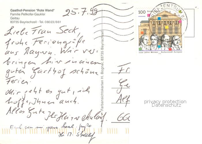 73726381 alte Postkarte Bayrischzell Gasthof Pension Rote Wand postalisch gelaufen Erhaltung siehe scans [FriedD77] KatCode: 11110009182112