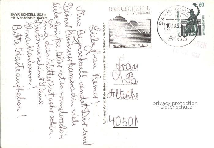 72032698 alte Postkarte Bayrischzell Gesamtansicht mit Wendelstein Edelweiss Wappen postalisch gelaufen Erhaltung siehe scans KatCode: 11110009182112