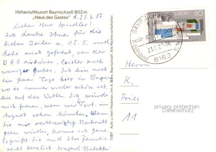 72941094 alte Postkarte Bayrischzell Haus des Gastes postalisch gelaufen Erhaltung siehe scans [LiesaD40] KatCode: 11110009182112