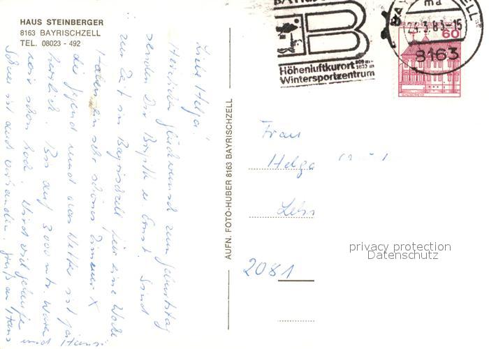 73125474 alte Postkarte Bayrischzell Haus Steinberger Ferienhaus Gaestehaus postalisch gelaufen Erhaltung siehe scans [FriedD77] KatCode: 11110009182112