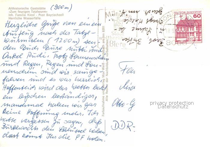 72706949 alte Postkarte Bayrischzell Historische Gaststaette Zum feurigen Tatlwurm postalisch gelaufen Erhaltung siehe scans [AndreD76] KatCode: 11110009182112