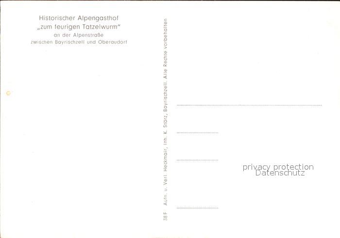 72461571 Bayrischzell Historischer Alpengasthof zum feurigen Tatzelwurm postalisch nicht gelaufen Erhaltung siehe scans KatCode: 11110009182112