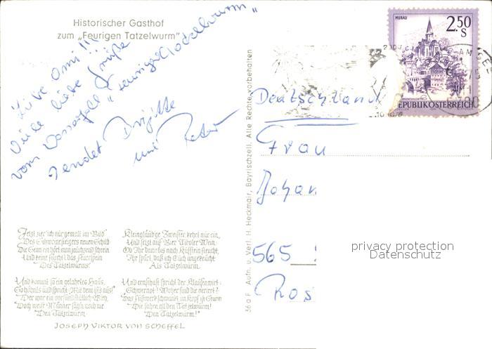 72069358 alte Postkarte Bayrischzell Historischer Gasthof zum Feurigen Tatzelwurm postalisch gelaufen Erhaltung siehe scans KatCode: 11110009182112