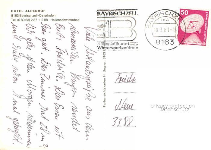 72825410 alte Postkarte Bayrischzell Hotel Alpenhof postalisch gelaufen Erhaltung siehe scans [AndreD76] KatCode: 11110009182112