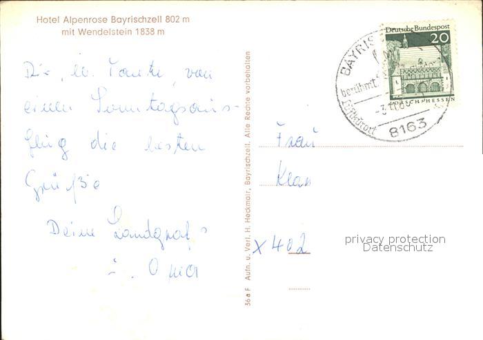 72495756 alte Postkarte Bayrischzell Hotel Alpenrose mit Wendelstein postalisch gelaufen Erhaltung siehe scans KatCode: 11110009182112