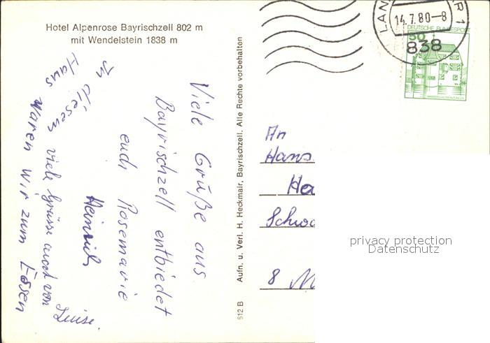 72600484 alte Postkarte Bayrischzell Hotel Alpenrose mit Wendelstein Bayerische Alpen postalisch gelaufen Erhaltung siehe scans [FriedD77] KatCode: 11110009182112
