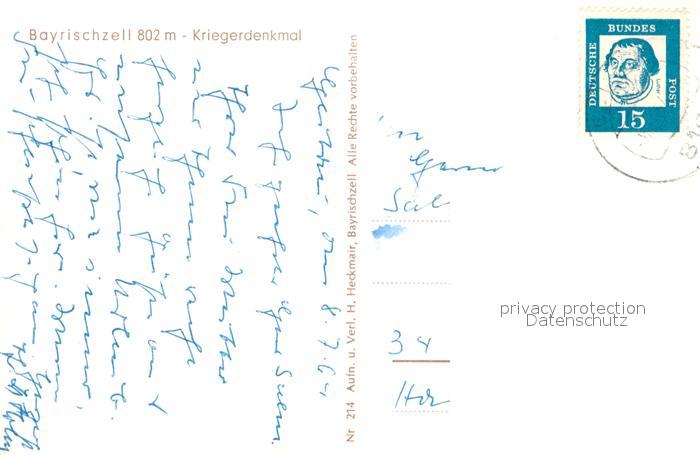 43507487 alte Postkarte Bayrischzell mit Kriegerdenkmal postalisch gelaufen Erhaltung siehe scans [LiesaD40] KatCode: 11110009182112