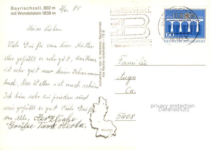 73081025 alte Postkarte Bayrischzell mit Wendelstein postalisch gelaufen Erhaltung siehe scans [LiesaD40] KatCode: 11110009182112