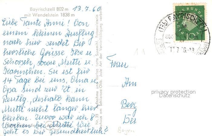 72985136 alte Postkarte Bayrischzell mit Wendelstein postalisch gelaufen Erhaltung siehe scans [LiesaD40] KatCode: 11110009182112