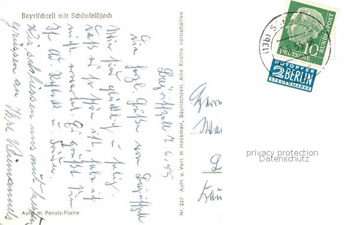 72892309 alte Postkarte Bayrischzell Schoenfeldjoch postalisch gelaufen Erhaltung siehe scans [KathaD81] KatCode: 11110009182112