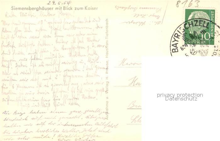 43495891 alte Postkarte Bayrischzell Siemens Berghaeuser mit Blick zum Kaiser Kaisergebirge Alpenpanorama postalisch gelaufen Erhaltung siehe scans [FriedD77] KatCode: 11110009182112