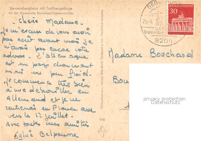 73637092 alte Postkarte Bayrischzell Siemensberghaus mit Traithengebirge postalisch gelaufen Erhaltung siehe scans [WerneD78] KatCode: 11110009182112