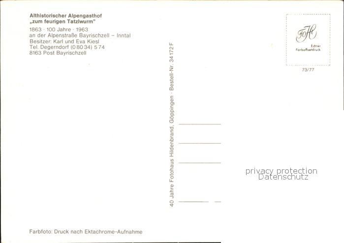 72578519 Bayrischzell Tatzlwurm Alpengasthof postalisch nicht gelaufen Erhaltung siehe scans [LiesaD40] KatCode: 11110009182112
