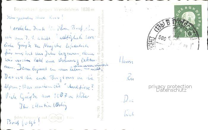 72361147 alte Postkarte Bayrischzell Wendelstein postalisch gelaufen Erhaltung siehe scans KatCode: 11110009182112