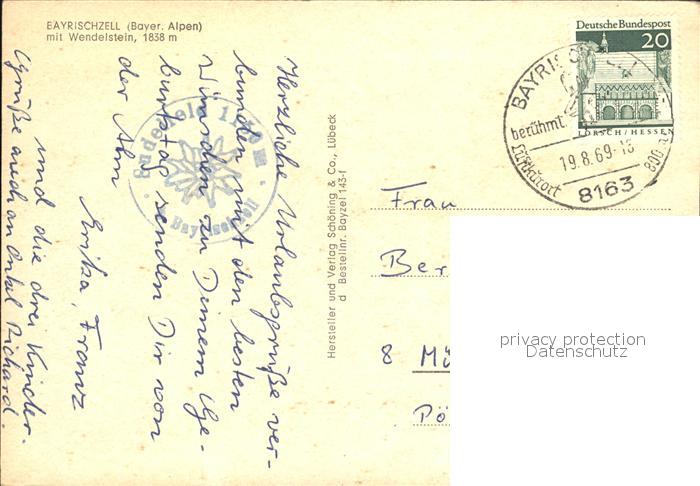 72446699 alte Postkarte Bayrischzell Wendelstein postalisch gelaufen Erhaltung siehe scans KatCode: 11110009182112
