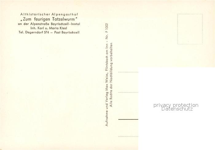 73090639 Bayrischzell Zum feurigen Tatzelwurm Alpengasthof postalisch nicht gelaufen Erhaltung siehe scans [KathaD81] KatCode: 11110009182112