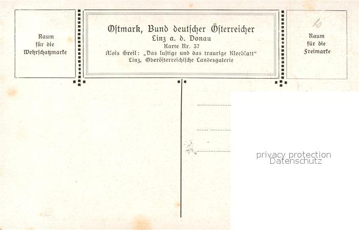 43116751 BDD Ostmark Linz Donau Karte Nr. 37 Alois Greil Das lustige und das traurige Kleeblatt KatCode 22440000000900