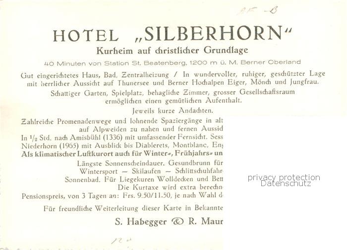 13760853 alte Postkarte Beatenberg BE Hotel Silberhorn Aussenansicht m. Bergpanorama postalisch gelaufen Werbekarte (keine Postkarte) Erhaltung siehe scans [LiesaD40] KatCode: 11470060175234