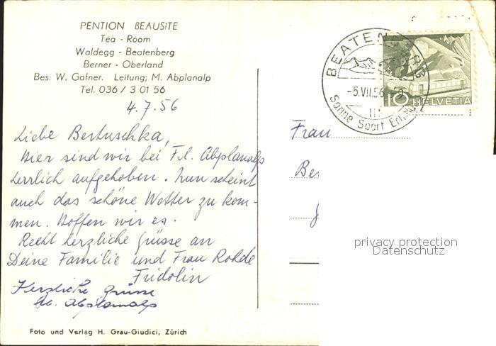 11640016 alte Postkarte Beatenberg Pension Beausite Tea-Room postalisch gelaufen Erhaltung siehe scans KatCode: 11470060175234