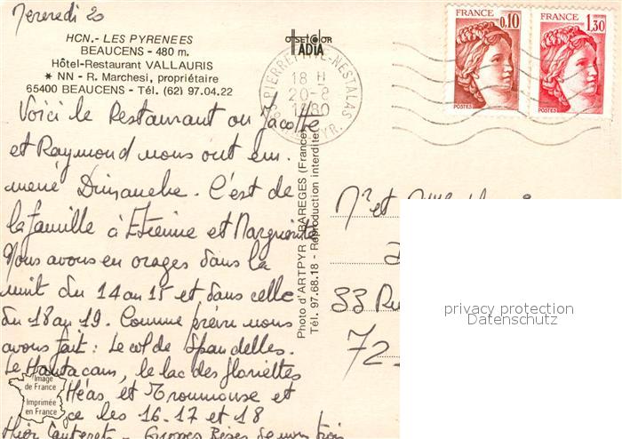 13588335 Beaucens Hotel Vallauris postalisch gelaufen Erhaltung siehe scans [WerneD78] carte postale Wern Katcode 11170065165077
