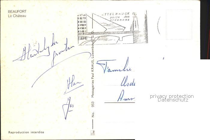alte Postkarte Beaufort Befort Luxembourg Chateau Schloss postalisch gelaufen Erhaltung siehe scans