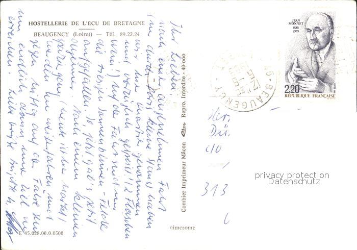 12237226 carte postale Beaugency Hostellerie de L Ecu de Bretagne postalisch gelaufen Erhaltung siehe scans KatCode: 11170045245028