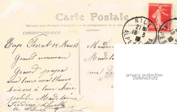 14104399 carte postale Beaulieu -sur-Mer 06 Alpes-Maritimes et Cap Ferat vue panoramique postalisch gelaufen Erhaltung siehe scans [FriedD77] KatCode: 11170006206011