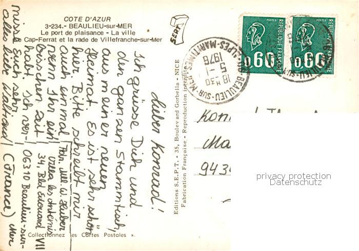 13848099 Beaulieu -sur-Mer 06 Alpes-Maritimes Le port de plaisance La ville de Cap Ferrat et la rade de Villefranche sur Mer Vue aerienne postalisch gelaufen Erhaltung siehe scans [WerneD78] carte postale Wern Katcode 11170006206011
