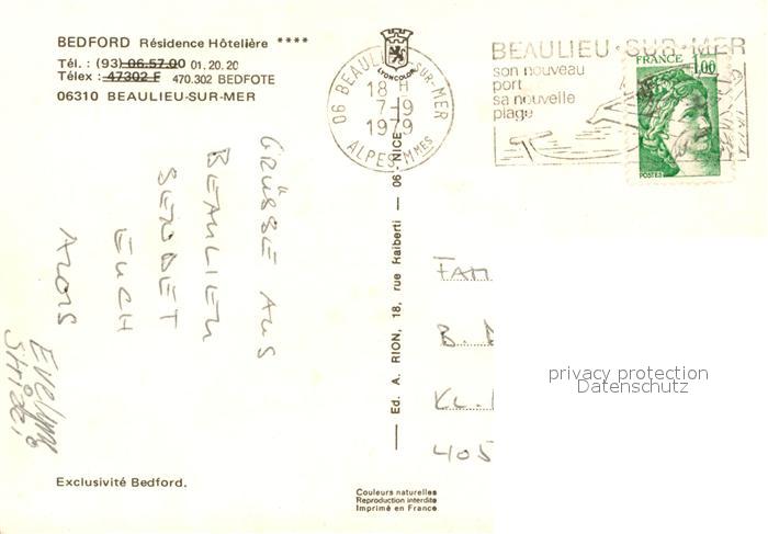 13305059 carte postale Beaulieu-sur-Mer Bedford Residence Hoteliere postalisch gelaufen Erhaltung siehe scans [KathaD81] KatCode: 11170006206011