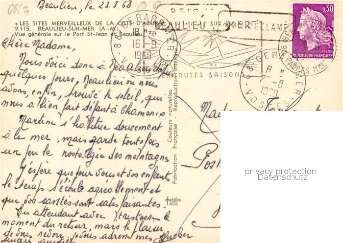 13508705 carte postale Beaulieu-sur-Mer Fliegeraufnahme postalisch gelaufen Erhaltung siehe scans [KathaD81] KatCode: 11170006206011