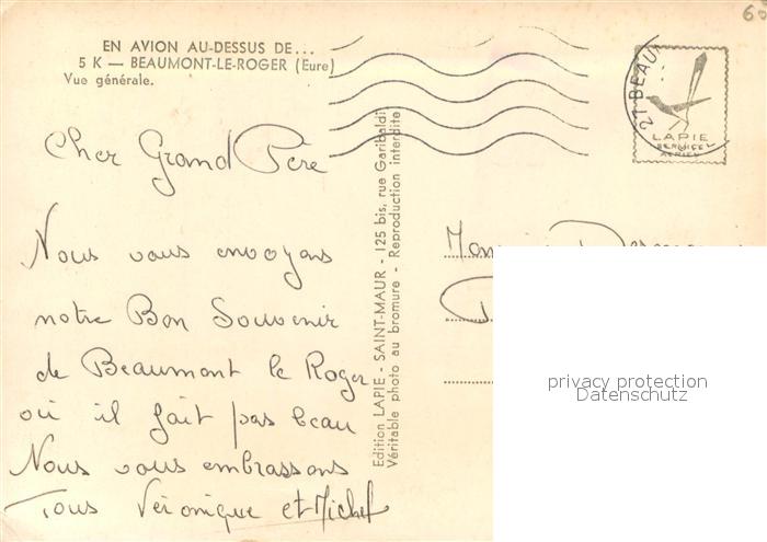 13711427 Beaumont-le-Roger Fliegeraufnahme Vue generale postalisch gelaufen Erhaltung siehe scans [LiesaD40] carte postale Lies Katcode 11170027227051