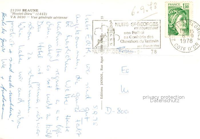 13081738 carte postale Beaune Cote d Or Burgund Fliegeraufnahme Hostel Dieu postalisch gelaufen Erhaltung siehe scans [LiesaD40] KatCode: 11170021121054