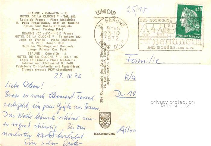 12687325 carte postale Beaune Cote d Or Burgund Hotel de la Cloche Place Madeleine postalisch gelaufen Erhaltung siehe scans [FriedD77] KatCode: 11170021121054