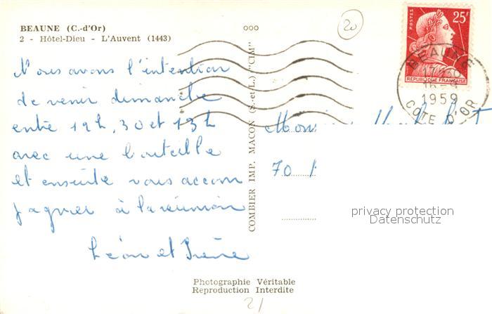 13502028 carte postale Beaune Cote d Or Burgund Hotel Dieu L Auvent postalisch gelaufen Erhaltung siehe scans [KathaD81] KatCode: 11170021121054