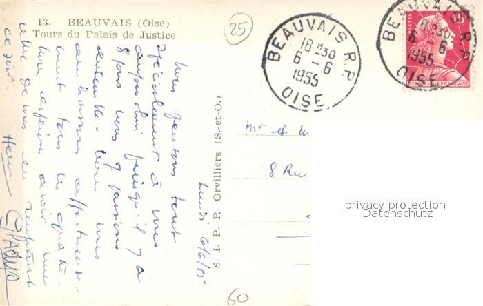 13524923 carte postale Beauvais 60 Tours du Palais de Justice postalisch gelaufen Erhaltung siehe scans [FriedD77] KatCode: 11170060160057