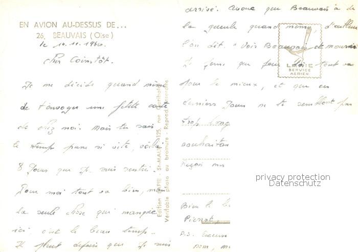 13593845 Beauvais 60 Vue aerienne postalisch gelaufen Erhaltung siehe scans [WerneD78] carte postale Wern Katcode 11170060160057