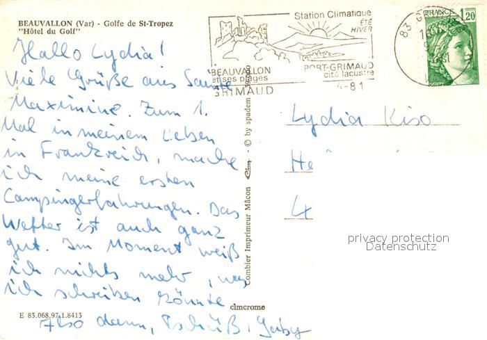 13357219 carte postale Beauvallon Grimaud Hotel du Golf Plage Golfe de Saint Tropez vue aérienne postalisch gelaufen Erhaltung siehe scans [FriedD77] KatCode: 11170083183068