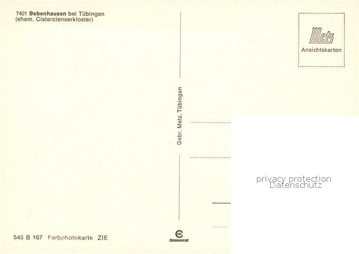 73207820 Bebenhausen Tuebingen Cistercienserkloster postalisch nicht gelaufen Erhaltung siehe scans [KathaD81] KatCode: 11110008416041