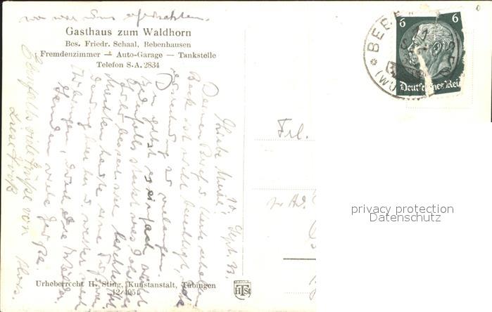 31731267 alte Postkarte Bebenhausen Tuebingen Gasthaus zum Waldhorn postalisch gelaufen Erhaltung siehe scans KatCode: 11110008416041