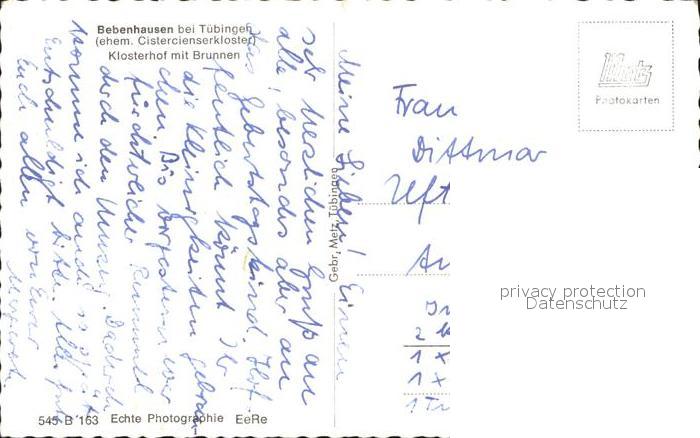 72405281 alte Postkarte Bebenhausen Tuebingen Klosterhof mit Brunnen postalisch gelaufen Erhaltung siehe scans KatCode: 11110008416041