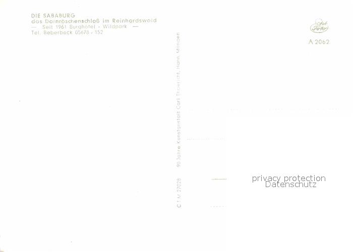 72688158 Beberbeck Sababurg Dornroeschenschloss im Reinhardswald Burghotel Wildpark postalisch nicht gelaufen Erhaltung siehe scans [FriedD77] KatCode: 11110006633013
