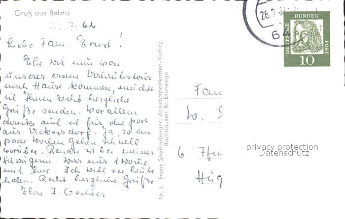 72120826 alte Postkarte Bebra Blick zum Alheimer Stadtbad Angerplatz Biberbrunnen am Anger postalisch gelaufen Erhaltung siehe scans KatCode: 11110006632003